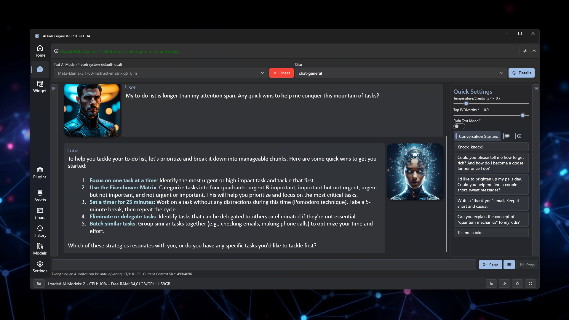- 📚 Start Fast with Ready-Made Characters & Models:Jump in with dynamic AI pals — from mystical storytellers to sassy sidekicks. Or roll your own, from scratch or by remixing existing ones.